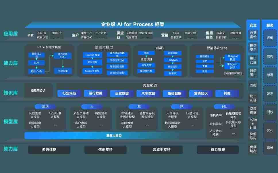 英国365上市公司问学智车解决方案是一套基于AI技术的汽车行业智能化系统,,覆盖从底层算力到顶层AI应用的全栈方案。。。方案由算力层、、、、模型层和应用层组成:算力层,,,,方案支持多种一体机配置,,,具备云端灵活部署、、多云适配以及动态优化计算资源的能力;模型层,,英国365上市公司问学平台版提供了企业级AI应用一站式构建与管理平台,,支持基于后训练强化技术的汽车企业专属模型的训练、、、评测和运营;应用层,,,,英国365上市公司问学DeepSeek版提供包括超级员工、、、智能招采、、、智能营销、、智能客服、、、、AI for BI等一系列解决方案,,,,可助力汽车行业实现数字化转型,,,,让管理更智能、、、、响应更敏捷。。